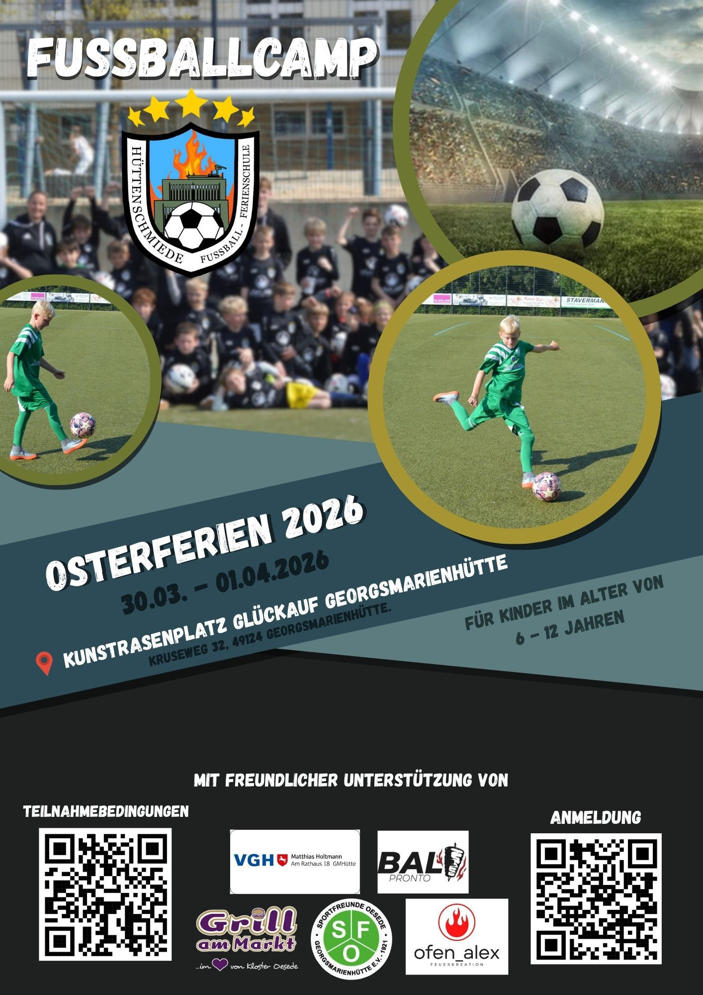 Auch in diesem Jahr veranstaltet die Hüttenschmiede wieder ein Fußballcamp in den Osterferien beim SFO. Ab sofort kann sich angemeldet werden!